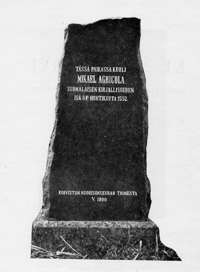 Agricolan kuolinpaikalle. Aloite tehtiin vuonna 1899. Kerättiin
