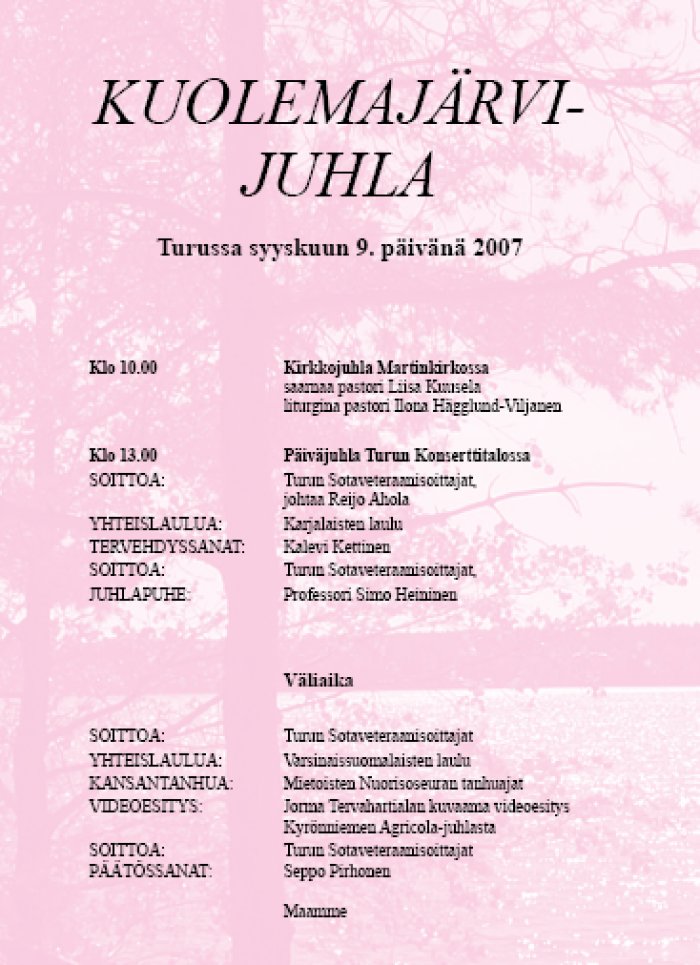 on ollut erityisen merkittävä. Agricolan juhlavuoden kuolemajärveläiset
